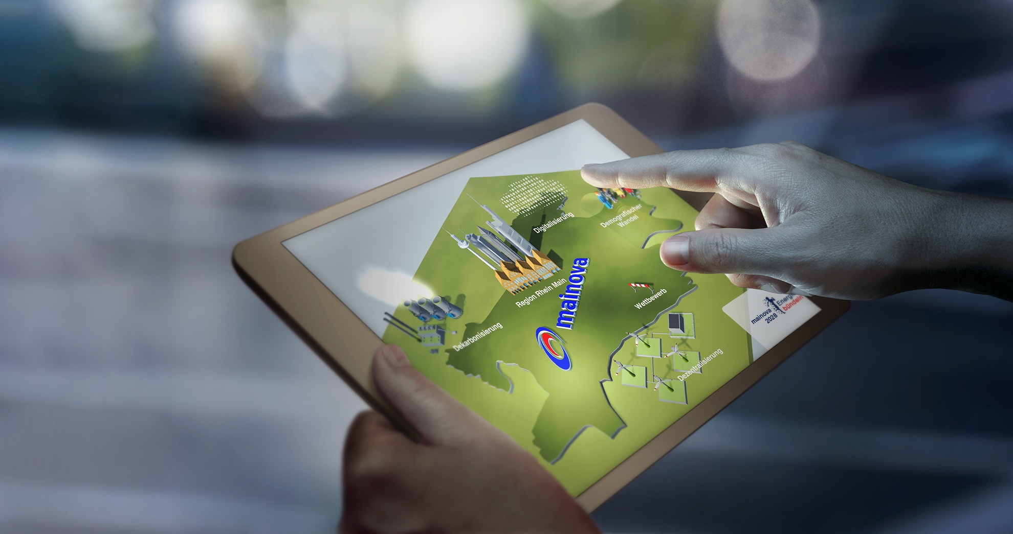 Für Mainova wurde eine interaktive Tablet-App entwickelt, die die nachhaltige Entwicklung der Stadt Frankfurt aufzeigt.